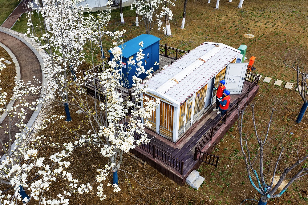 國(guó)網(wǎng)長(zhǎng)治供電公司員工在國(guó)家城市濕地公園對(duì)配電設(shè)施進(jìn)行專項(xiàng)巡查,筑牢景區(qū)用電安全防線。