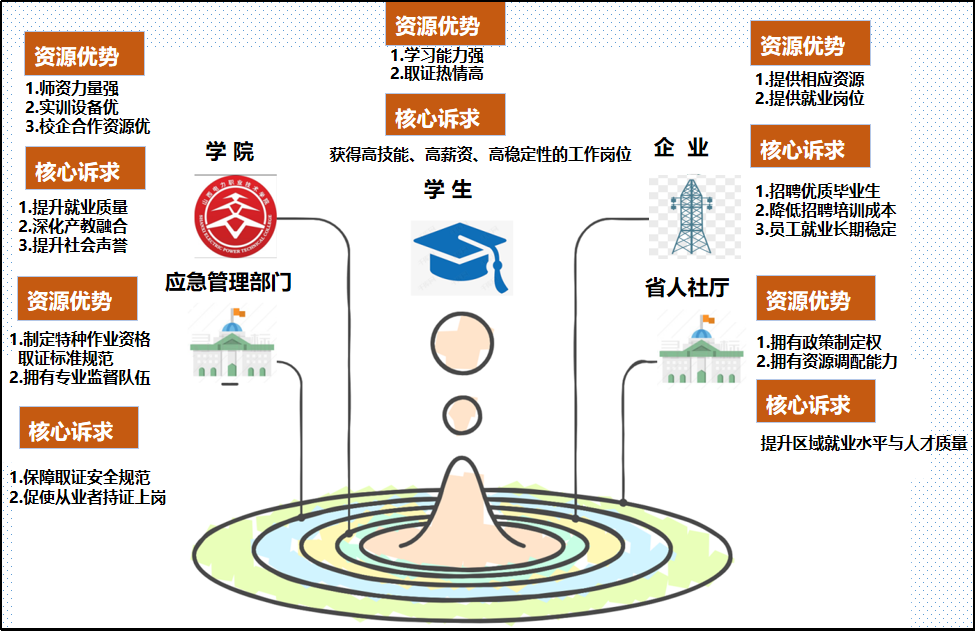 針對上述問題,學(xué)院精準(zhǔn)識別利益相關(guān)方,通過“校政合作取證、校企合作育才、雙線協(xié)同育人”,開辟高技能、高薪資、高穩(wěn)定性的高質(zhì)量就業(yè)新賽道,為電力行業(yè)輸送優(yōu)質(zhì)高技能人才,回應(yīng)“實(shí)現(xiàn)高質(zhì)量就業(yè)”的時(shí)代命題。