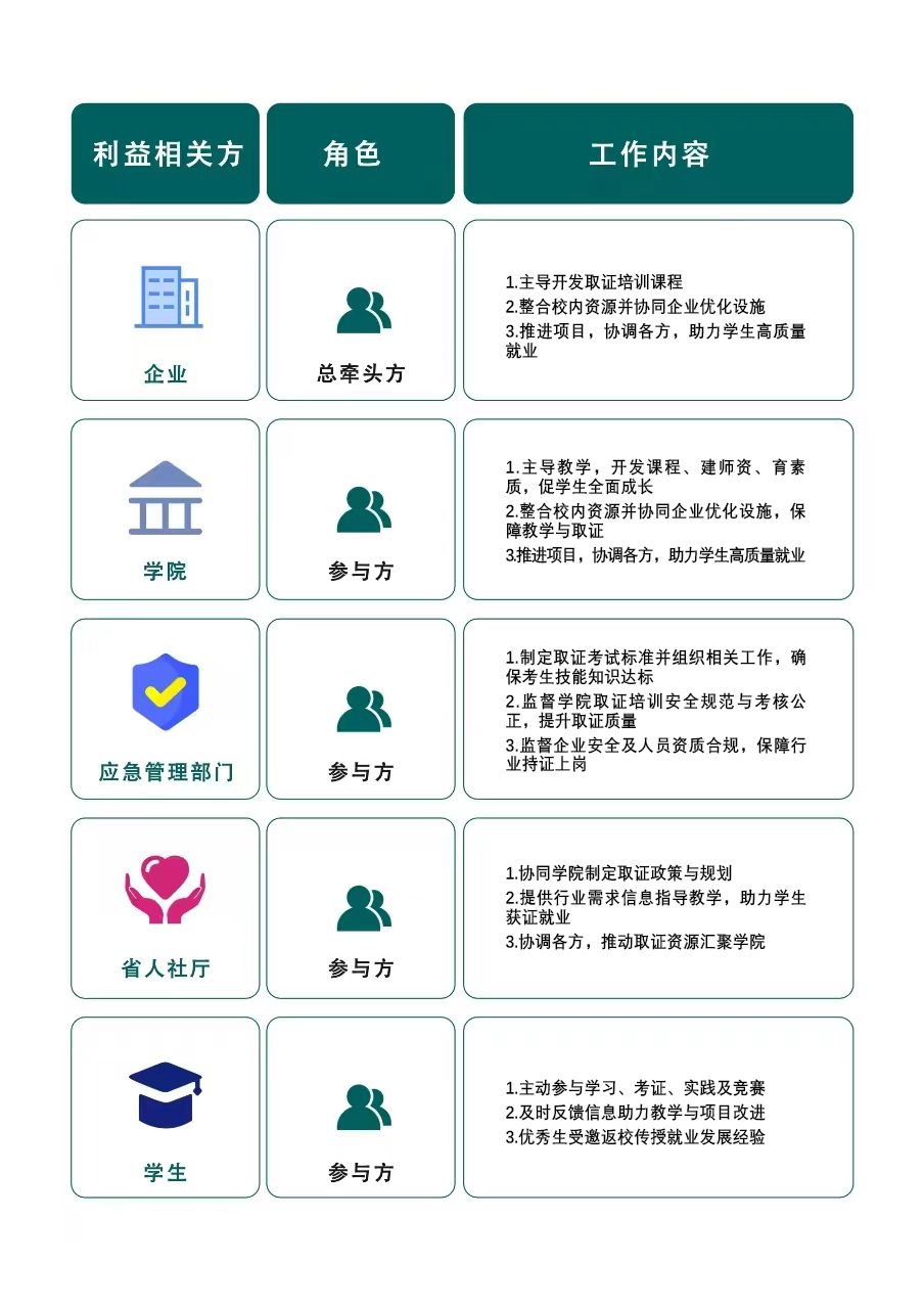 精準(zhǔn)識別企業(yè)、應(yīng)急管理部門、省人社廳、學(xué)院、學(xué)生等利益相關(guān)方。通過深度調(diào)研(問卷+座談)梳理各方利益訴求,堅(jiān)持“專業(yè)主導(dǎo)、協(xié)同聯(lián)動”原則,厘清利益相關(guān)方責(zé)任邊界,建立“需求對接-資源整合-方案共商”的協(xié)作模式,形成多方聯(lián)動就業(yè)質(zhì)量提升方案。
