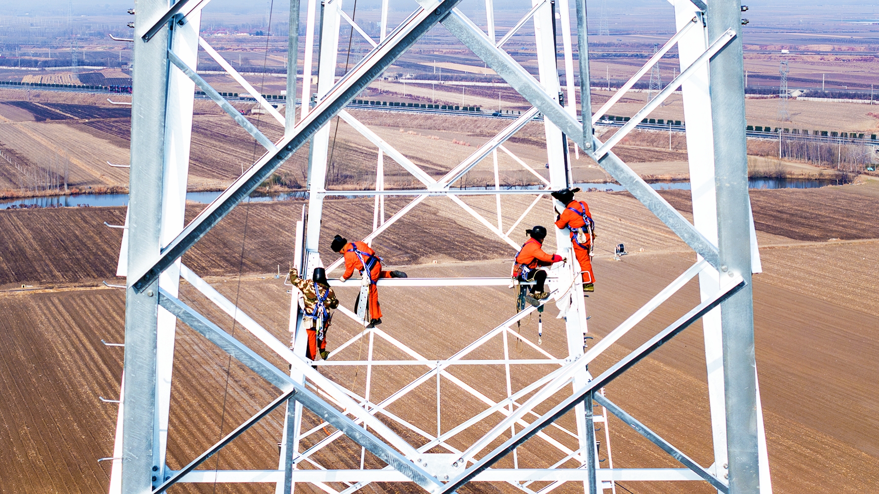 2月1日,山東省煙威1000千伏特高壓交流輸變電工程4標段流動式起重機組塔作業(yè)現(xiàn)場,國網(wǎng)山西送變電公司施工人員正在進行曲臂就位作業(yè)。